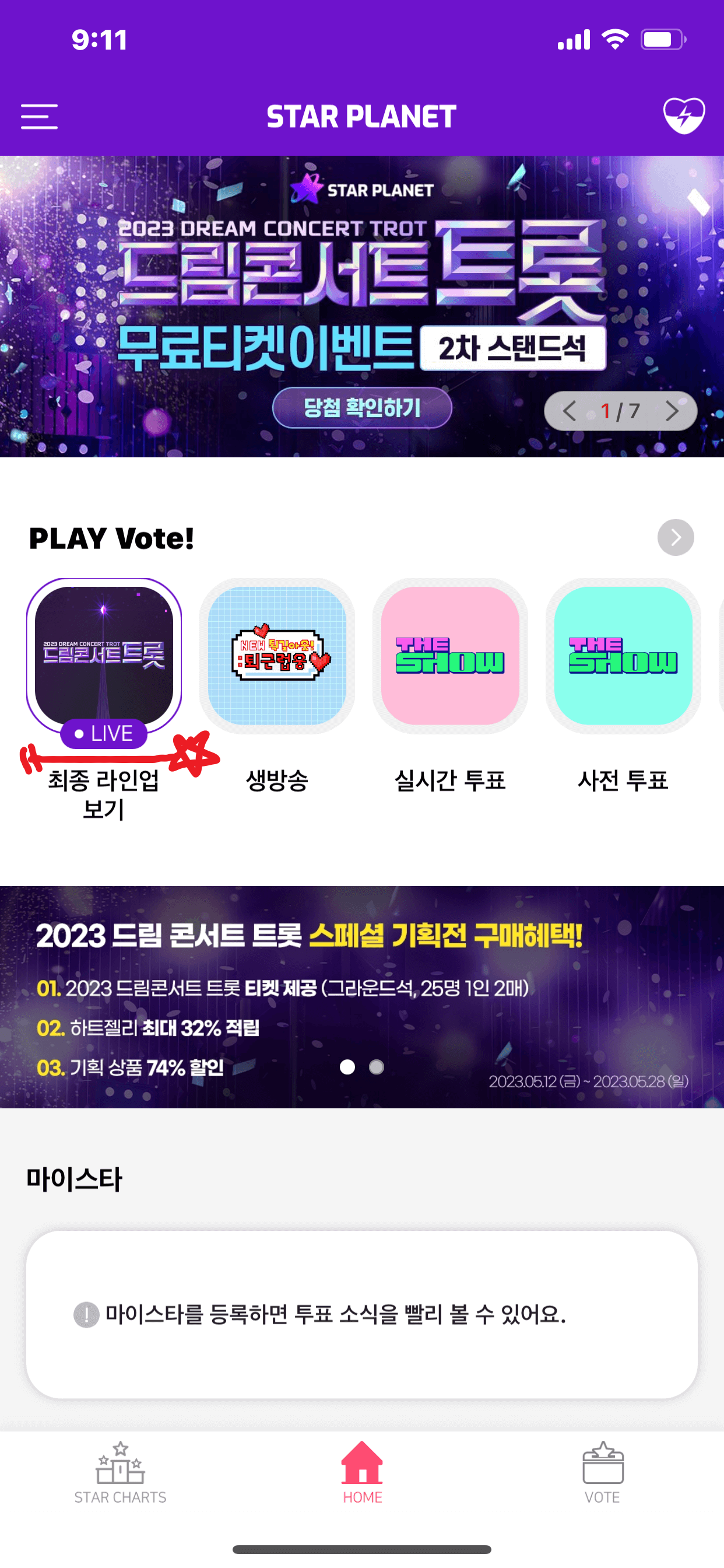 1) 휴대폰에 있는 스타플래닛 앱을 실행합니다.